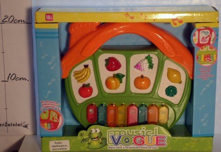 Žaislinis pianinas, padedantis vaikui nuo mažų dienų susipažinti su muzikos garsais, lavina klausą, vaikų fantaziją. Įpatingai tikroviški garsai, sukurtos įdomios ir gražios melodijos. Žaislas skleidžia įvairius garsus, tuo pačiu supažindindamas su supančiu pasauliu. Žaislinis pianinas ne tik skleidžia garsus, groja melodijas.